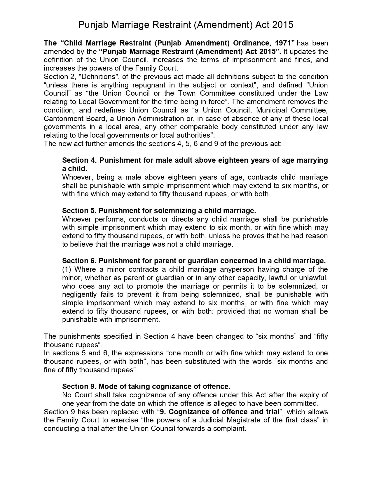 The law which was passed in Punjab in 2015, age was kept at 16 years, but the punishments increased. Nikkah Khawans are also punishable, parents of both bride and groom are punishable, so this was not there before...There is imprisonment and the fine is also above three lacs rupees, so at least when the punishments will come into practice, parents will know that they can go to jail, or we have to give three lacs fine, so this will prove to be better to a large extent. [Bedari]
