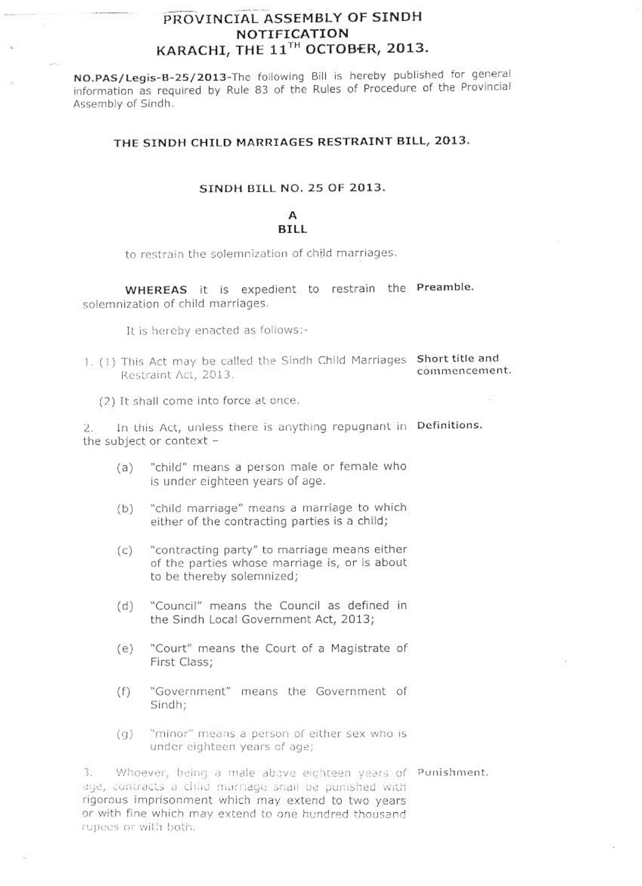 Now the issue is that people in Sindh go to Punjab for marriage, especially if they are being dealt with harshly here (Sindh). We need to make uniform laws overall in Pakistan, especially in Balochistan and Punjab. Of course, if it is stopped in two places, they can go to KP as well. So, I understand that, and I believe there is a need to make the same law in every province. [HANDS]