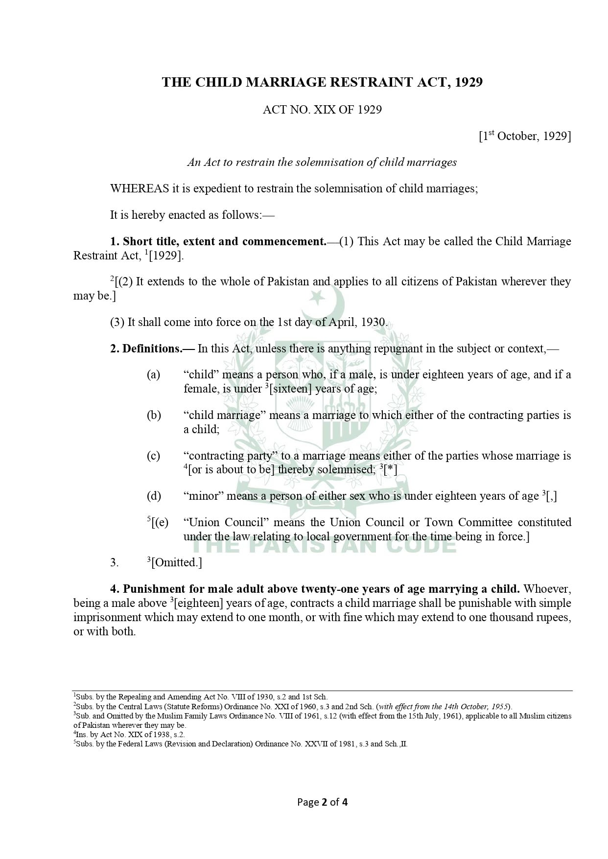 Child Marriage Restraint Amendment Bill Presented in Senate 2019